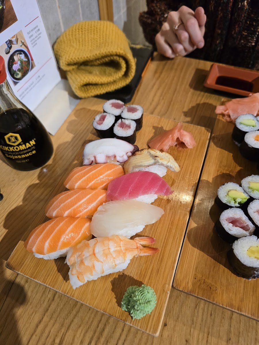 Smaller dishes play an important role here too. Edamame is served simply and works perfectly as a light start while browsing the rest of the menu. Sushi lovers often gravitate toward the Rainbow Roll, a colorful option that feels both playful and refined. Another favorite is the Hausgemachte Gedämpfte Teigtäschchen, offering a warm, homemade touch that contrasts nicely with the cool precision of sushi and sashimi.