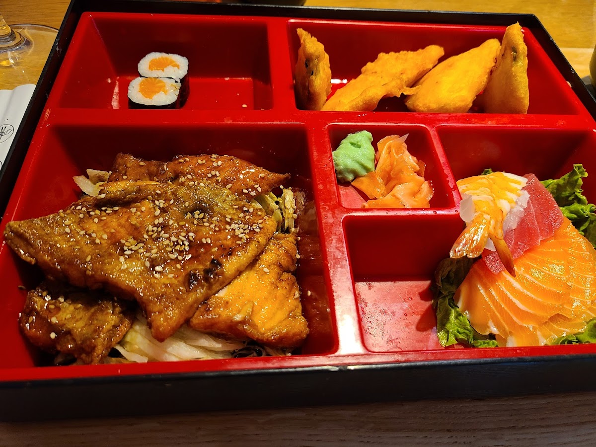 The menu focuses on Japanese classics with a clear emphasis on freshness and balance. One of the standout choices is the Sushi & Sashimi Moriawase, which arrives beautifully arranged and highlights the quality of the fish without unnecessary extras. Each piece tastes deliberate, clean, and well-prepared. For something more filling, the Salmon Teriyaki Bento delivers comfort and variety on one plate, combining rich flavors with a satisfying presentation.
